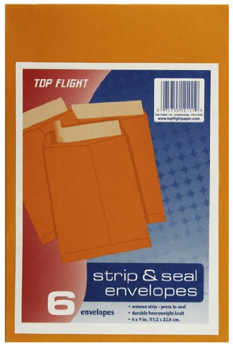 we have pleased to offer you to Top Flight Strip and Seal Open-End Envelopes, 6 x 9 Inches, Brown Kraft, 6 Envelopes per Pack (6912111) Reviews